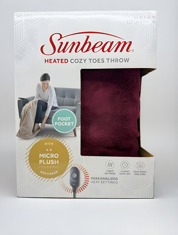 SUNBEAM MICROPLUSH FOOT POCKET HEATED THROW - GARNET